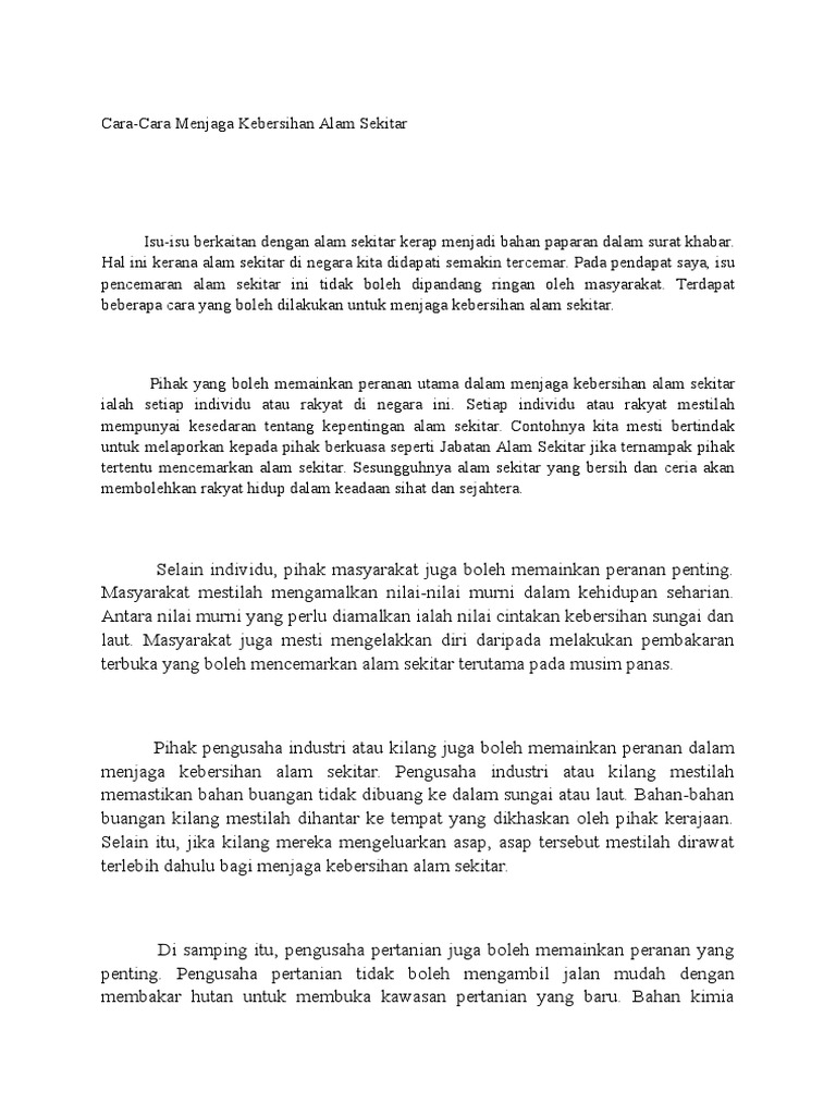 Pada hari ini media massa memainkan peranan penting dalam membentuk cara. Cara Cara Menjaga Alam Sekitar. Pada pendapat saya isu pencemaran alam sekitar ini tidak boleh dipandang ringan oleh masyarakat.